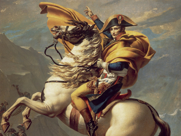 Celebre è il dipinto di Jacques-Louis David che lo raffigura mentre attraversa le Alpi su un cavallo impennato. La realtà storica era ben diversa, ma l’immagine costruita era potente: un leader audace, determinato, destinato alla gloria.