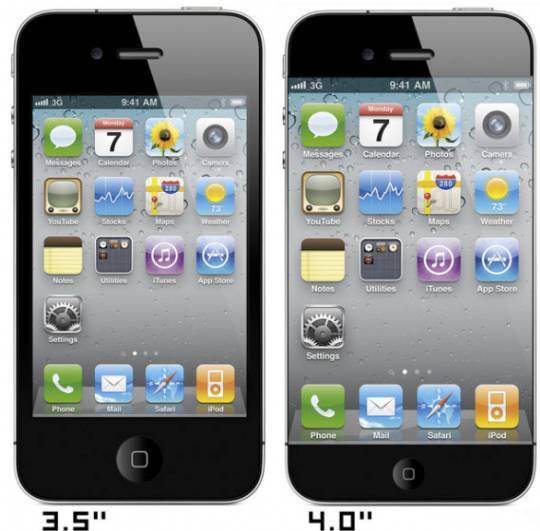 Si parla di una possibile adozione di display da 4 pollici sul prossimo iPhone 5. Per questo in rete sono apparse alcune immagini di come potrebbe essere la nuova generazione di iPhone. Come potete vedere lo schermo si estende da parte a parte riducendo lo spessore della cornice laterale e di quella superiore ed inferiore.